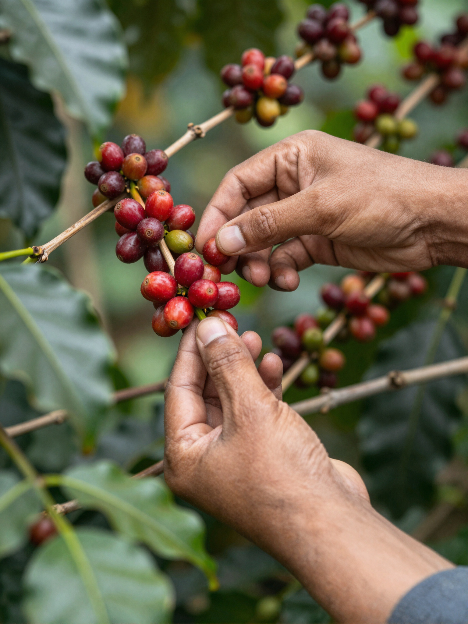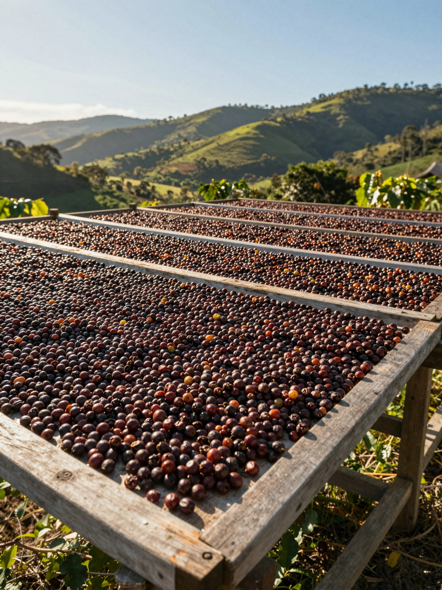 Nossa produção é um convite ao tempo. No Poço do Egito, abandonamos a pressa em favor da perfeição. O café MUCIDA nasce em um sistema sintrópico, onde a floresta protege e nutre cada pé. A colheita é estritamente manual e seletiva: apenas os frutos em maturação plena são colhidos.